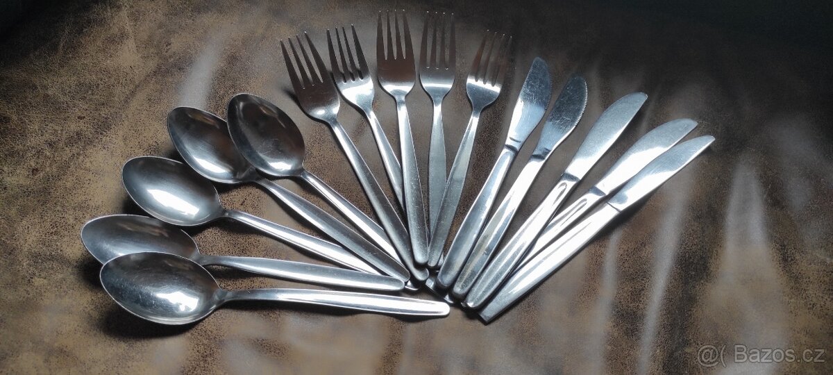 Nabízím sadu příborů po 5 kusech 290 Kč a nerezový tác o velikosti 45x32 cm 190 Kč.