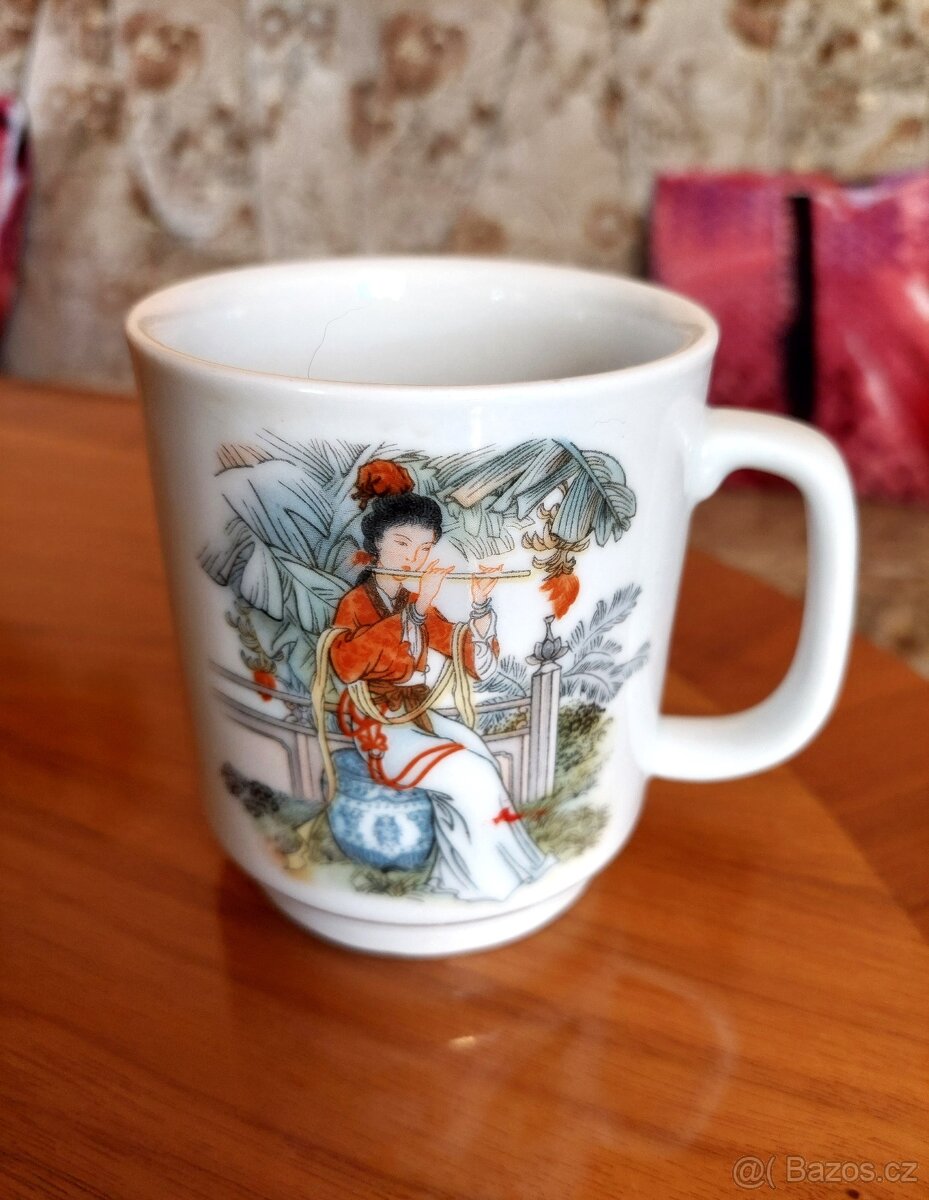 Prodám starý porcelánový čínský hrnek v TOP STAVU. Perfektní barvy, vespodu zlatý proužek, dvě černé tečky jsou z tovární výroby. Výška 9,5cm a průměr 8cm. Zaslání zásilkovna, balíkovna po předchozí platbě na účet.