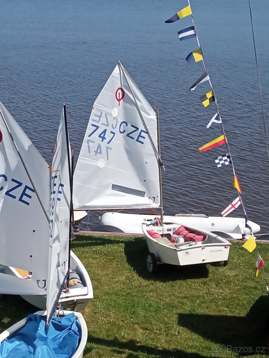 Prodám závodní plachetnici optimist vč.manipulačního vozíku,přešlijsme na vyšší lodní třídu
