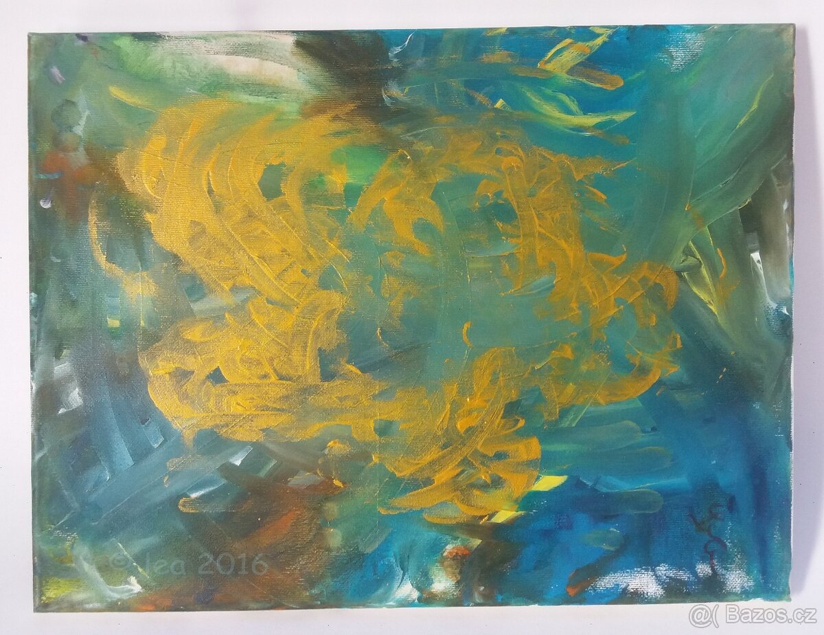 Obraz malovaný prsty akrylovými barvami na plátně o rozměru 330x430 mm. Obrazy nevidomé kamarádky Lei jsou výjimečné tím, že mají silnou pozitivní energii a díváním na ně, se lidem zastaví myšlenky a najdou v sobě klid. Peníze z koupi obrazu jsou pro ni. Děkuji
