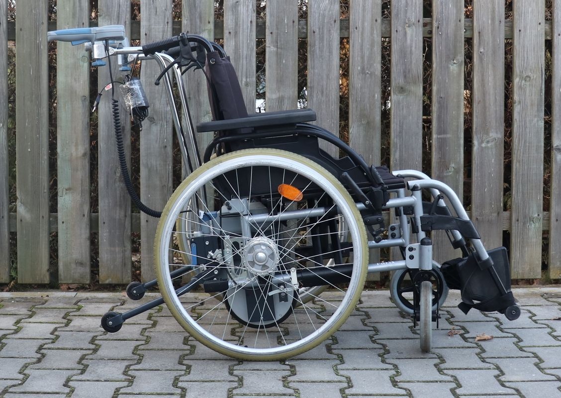 Prodám invalidní vozík s pohonem Viamobil. Pohon se připojí zezadu k vozíku a pomáhá Vám vozík tlačit. Dostatečně výkonný pro prudké stoupání a dlouhé cesty. Je lehký a snadno se ovládá.
