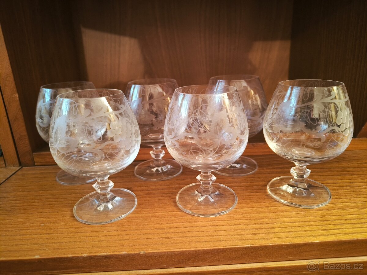 Nabízím 6 ks broušených sklenic s vinnými motivy. Pěkný stav,nepoužívané,bez vad.