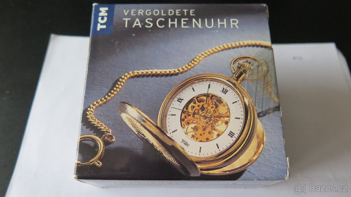 Nabízím levně nepoužité pozlacené kapesní hodinky TCM s pozlaceným řetízkem. Jsou v etui a s původní krabičkou.