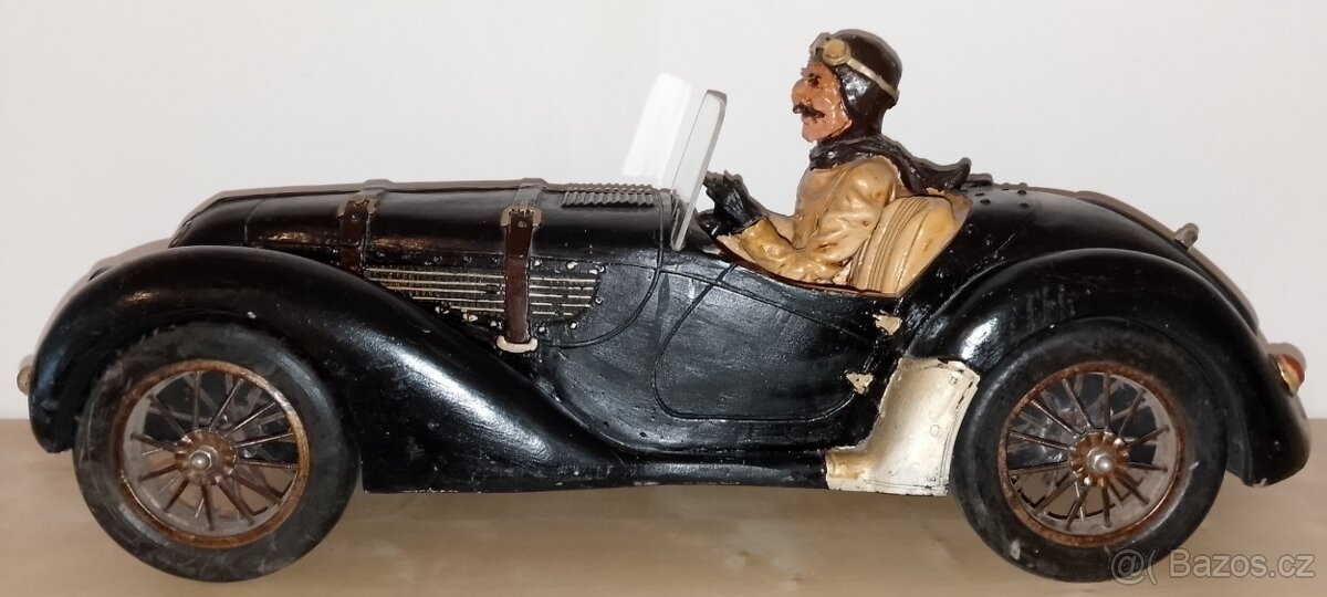 Tento propracovaný starožitný model je krásný umělecký předmět vyrobený z velmi odolného polyresinu,kola kov,PŘEDNÍ SKLO - PLEXY....