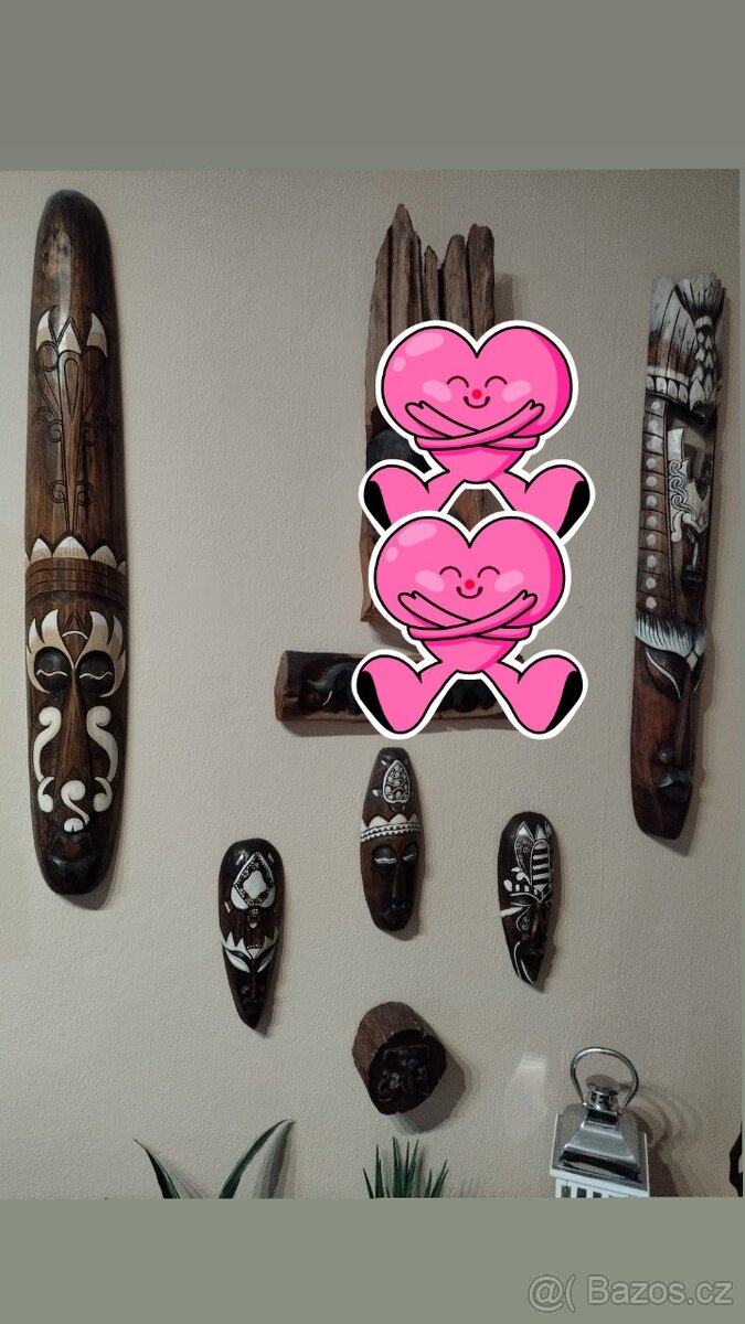 Prodám z důvodu stěhování dřevěné masky a různé dekorace.Celek,vše za 1990kč.Dřevo z Indie.