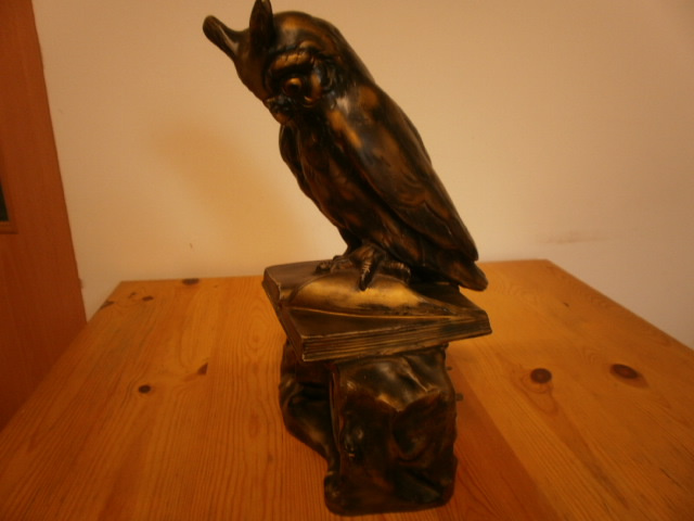 Prodám zajímavé staré mechanické hodiny - sádrový odlitek sova na knize. Jsou funkční a vyčištěné od hodináře. Výška 35 cm, šířka podstavce 23 cm.