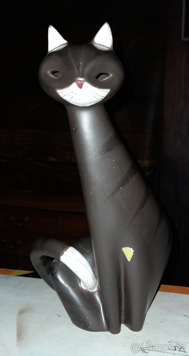 Prodám glázovanou keramickou sošku kočky Brusel Czechoslovakia, výška cca 26cm, cena dohodou