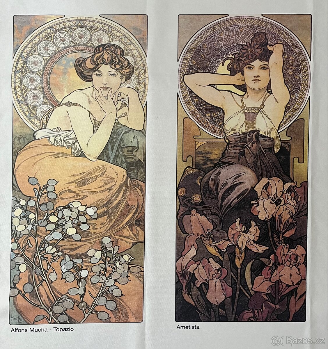 Bavlněný panel s potiskem obrazů A. Muchy (Topazio, Ametista, Smeraldo, Rubino)