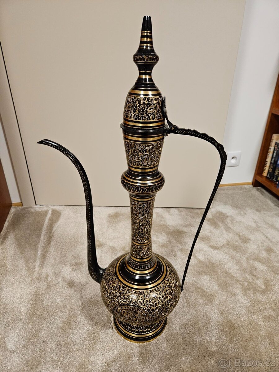 Čajová dekorativní konvice, ručně vyrytá mosaz, výška 80 cm, nejedná se o starožitnost.
