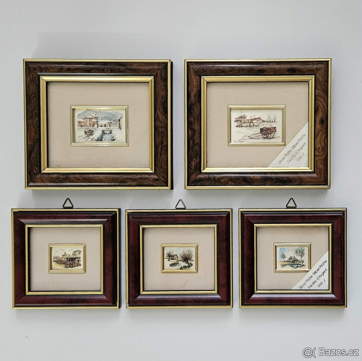 Velmi zachovalé starožitné obrázky dělané ze stříbra a ručně malované. Cena dohodou