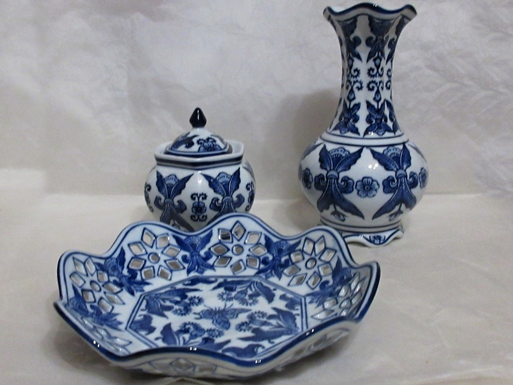 Pěkná sada vázy, misky a cukřenky modře zdobeného českého porcelánu, měla jsem jako ozdobu v pergole, abych si nerozbila cibulák. Občas byla použita ale stav je výborný. Nabízím i další věci v modrém dekoru a barvě, přešla jsem postupně na hnědé odstíny. Je možné i zaslat.