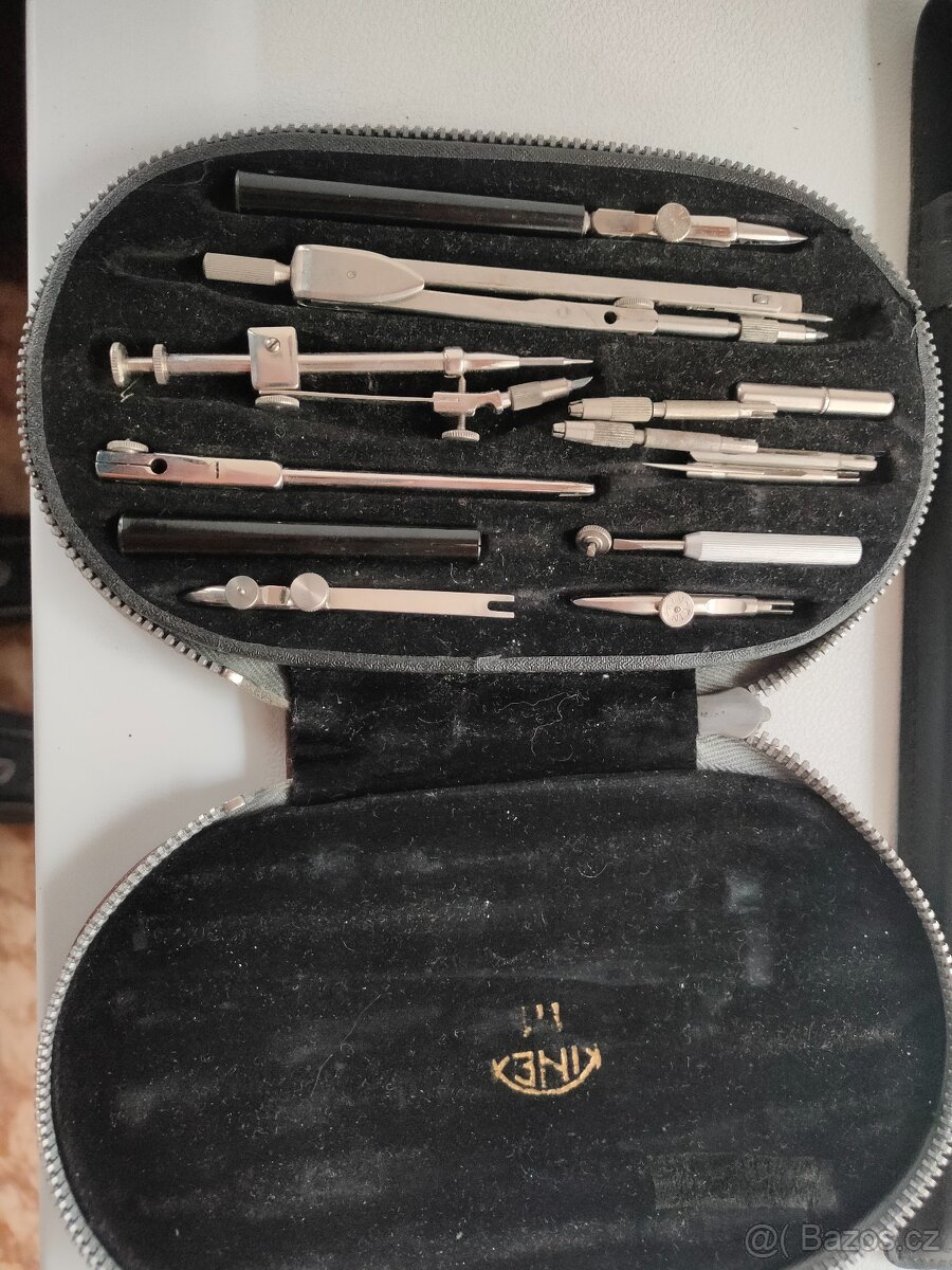 Prodám rýsovací potřeby ze sedmdesátých let. Vše na obrázcích je za 800 Kč.