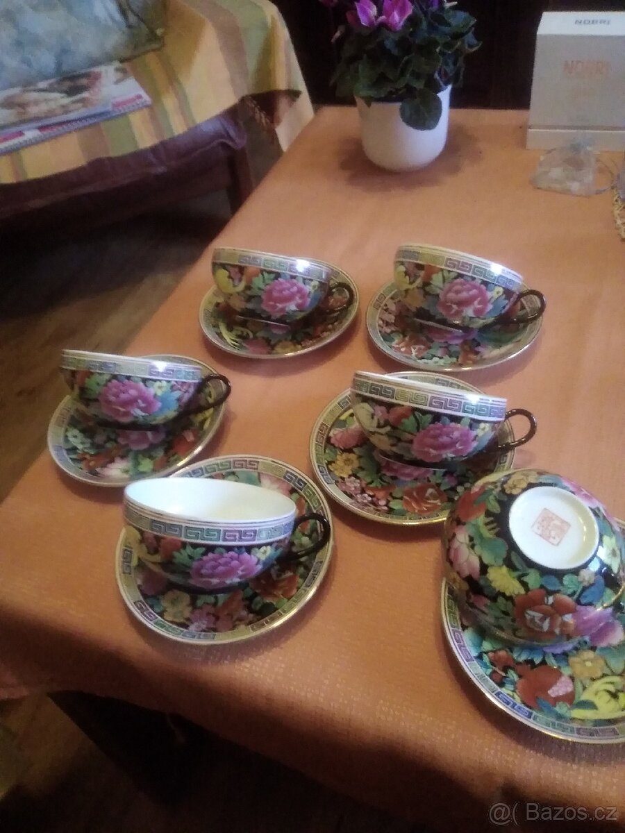 Nádherný čínský porcelánový servis značeny,ruční malba 6. šálku a 6 talířku,kompletní pošlu zásilkovnou balikovnou nebo PPL perfektně zabalím.