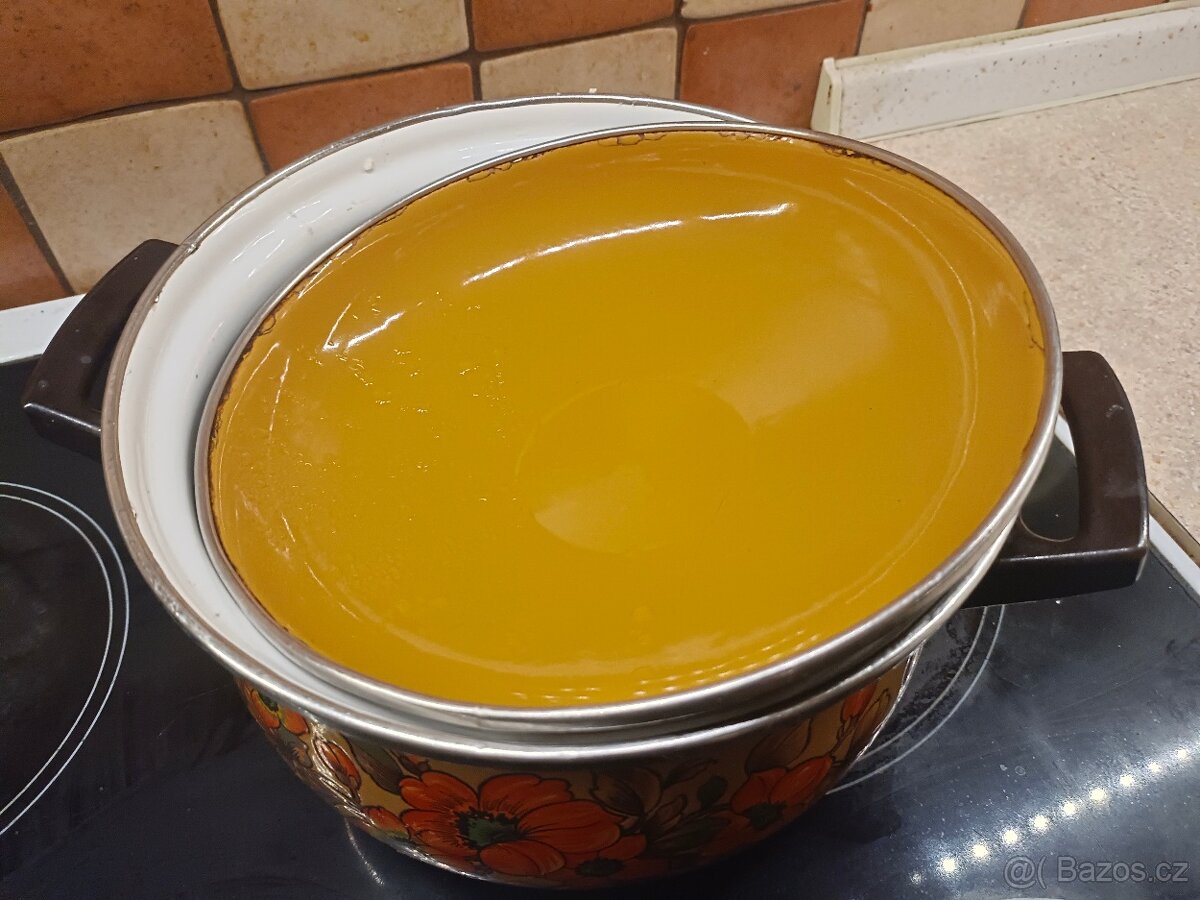 Starý smaltovaný hrnec s poklicí