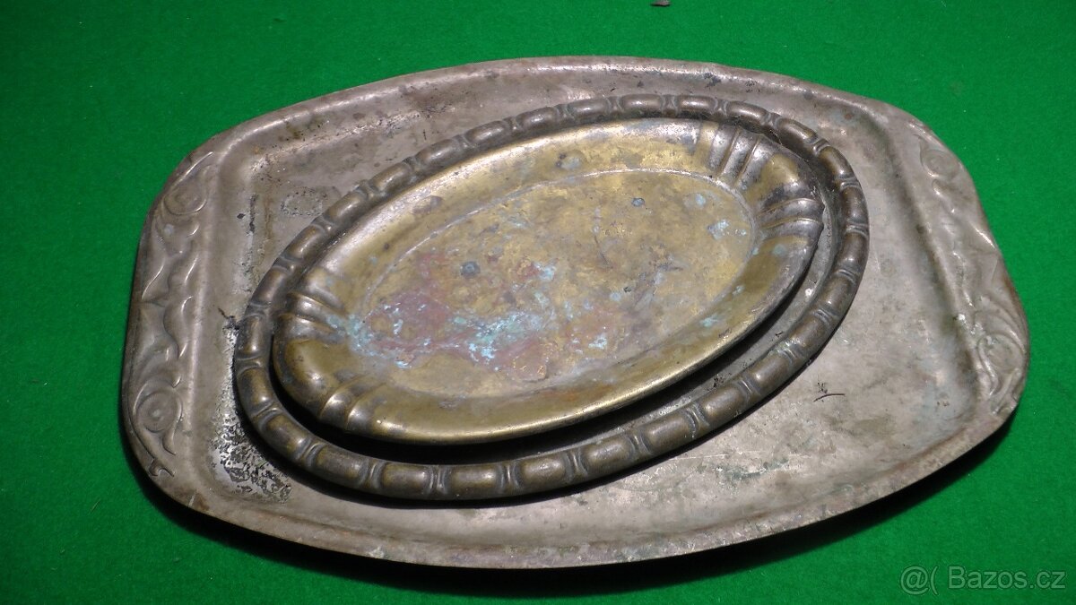 Prodám celkem 4 tácy, mosazné starožitné,kus za 100Kč.Možno i jednotlivě.Tel 720658124