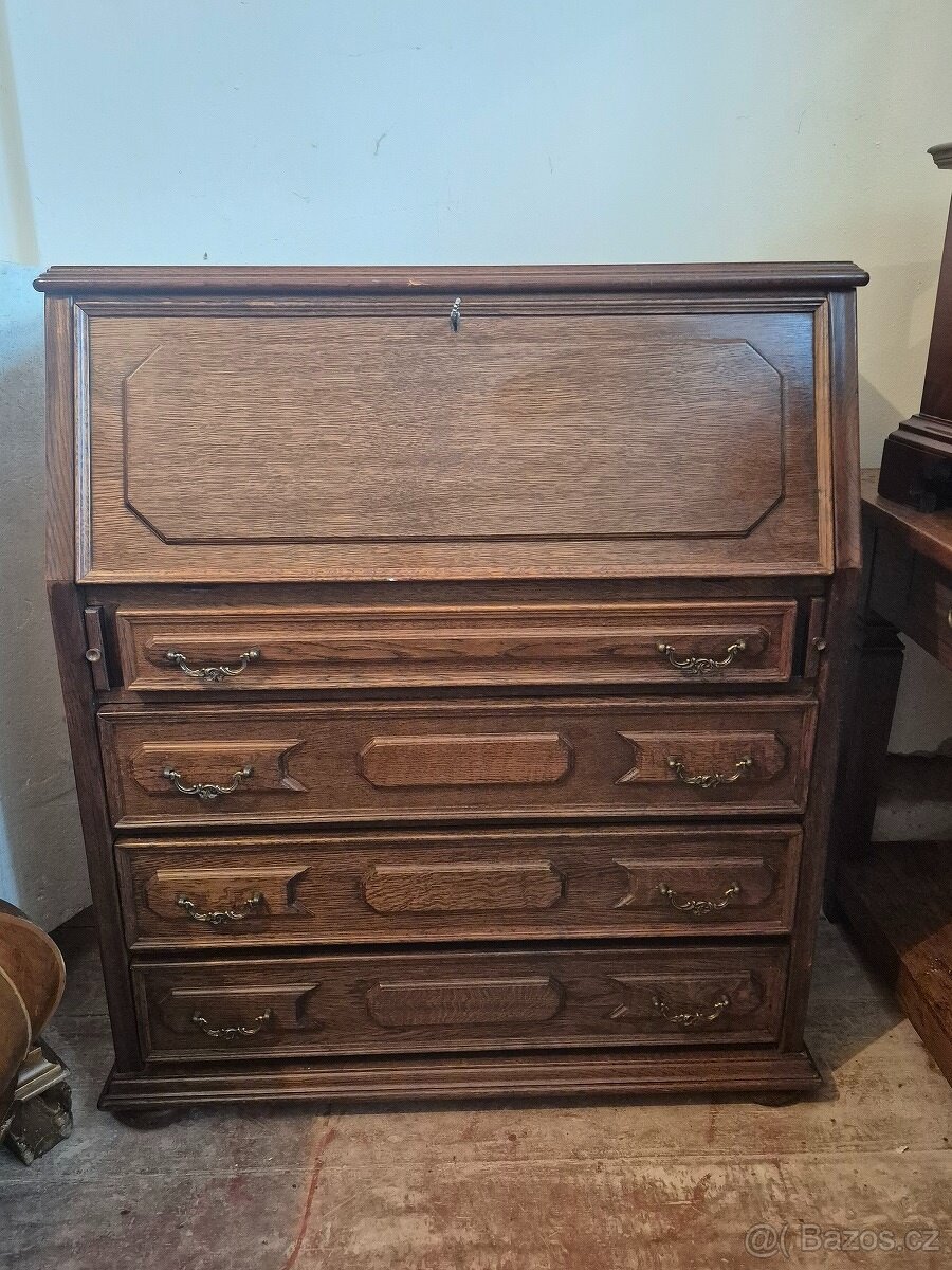 Zachovalý rustikální sekretář z masivního dubového dřeva.