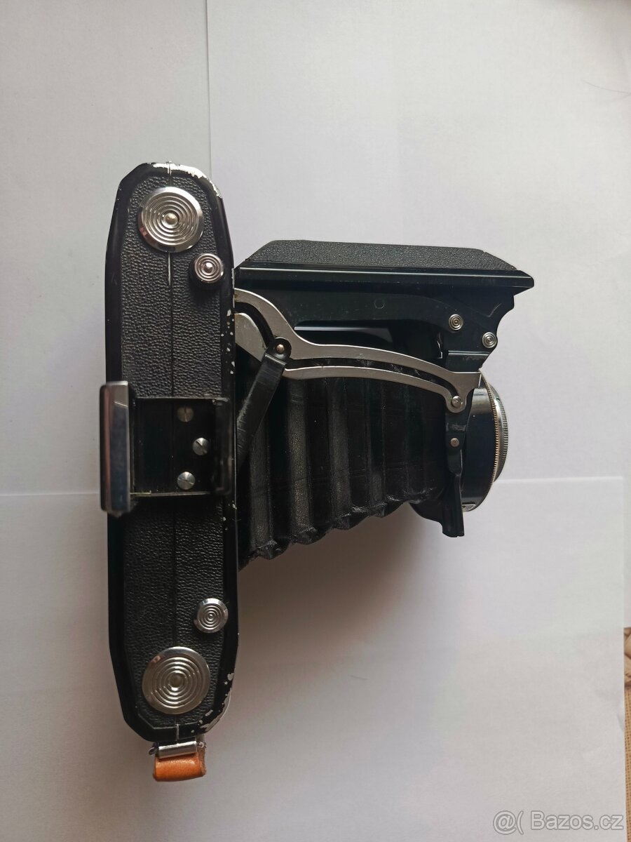 Prodám krásně zachovalý starý měchový fotoaparát Zeiss Ikon Nettar 515/2 (střední formát 6×9 cm) s originálním koženým pouzdrem.