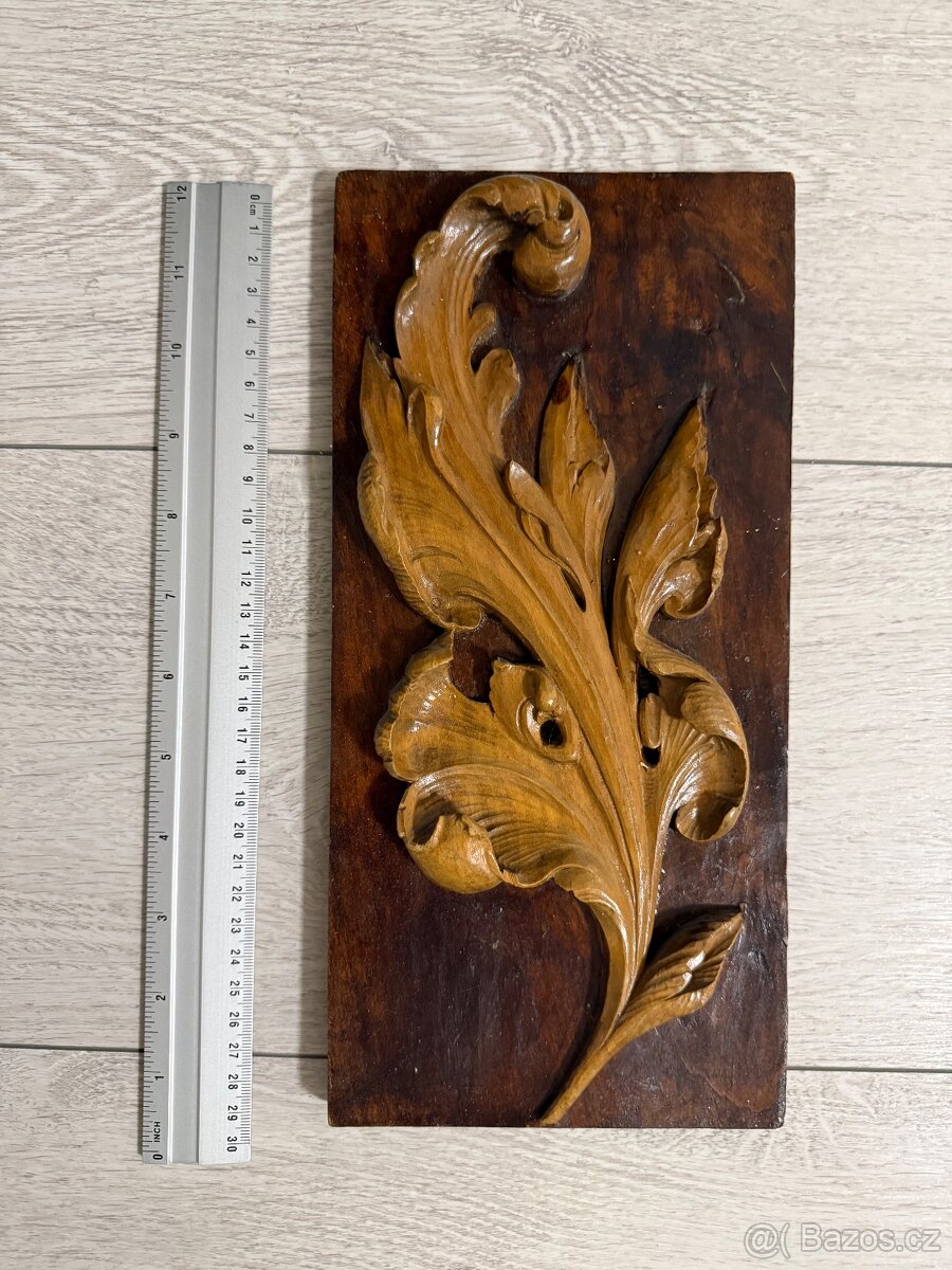 Ručně vyřezávaný dřevěný ornament – akantový list