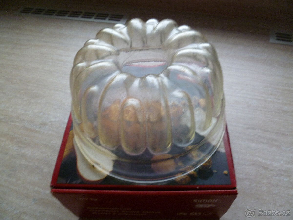 Prodám novou skleněnou formu na bábovku, pěkný tvar, průměr 21cm, 0,7 kg, značka SIMAX
