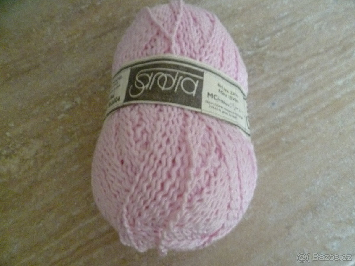 Prodám novou pletací přízi, růžová barva, mám 3 klubíčka, 83% ba, 17% VSh, ( 1 klubíčko 227 m)