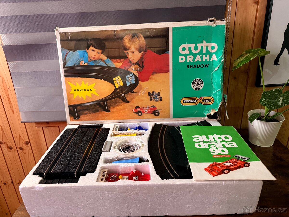 retro autodráha Shadow - [1.2. 2026]Prodám retro dnes již sběratelskou autodráhu Shadow včetně originální krabice a návodu. K autodráze jsou 3 autíčka a funkční trafo. Dráha je kompletní. Autíčka a dálkové ovladače jsou ve stavu viz foto.