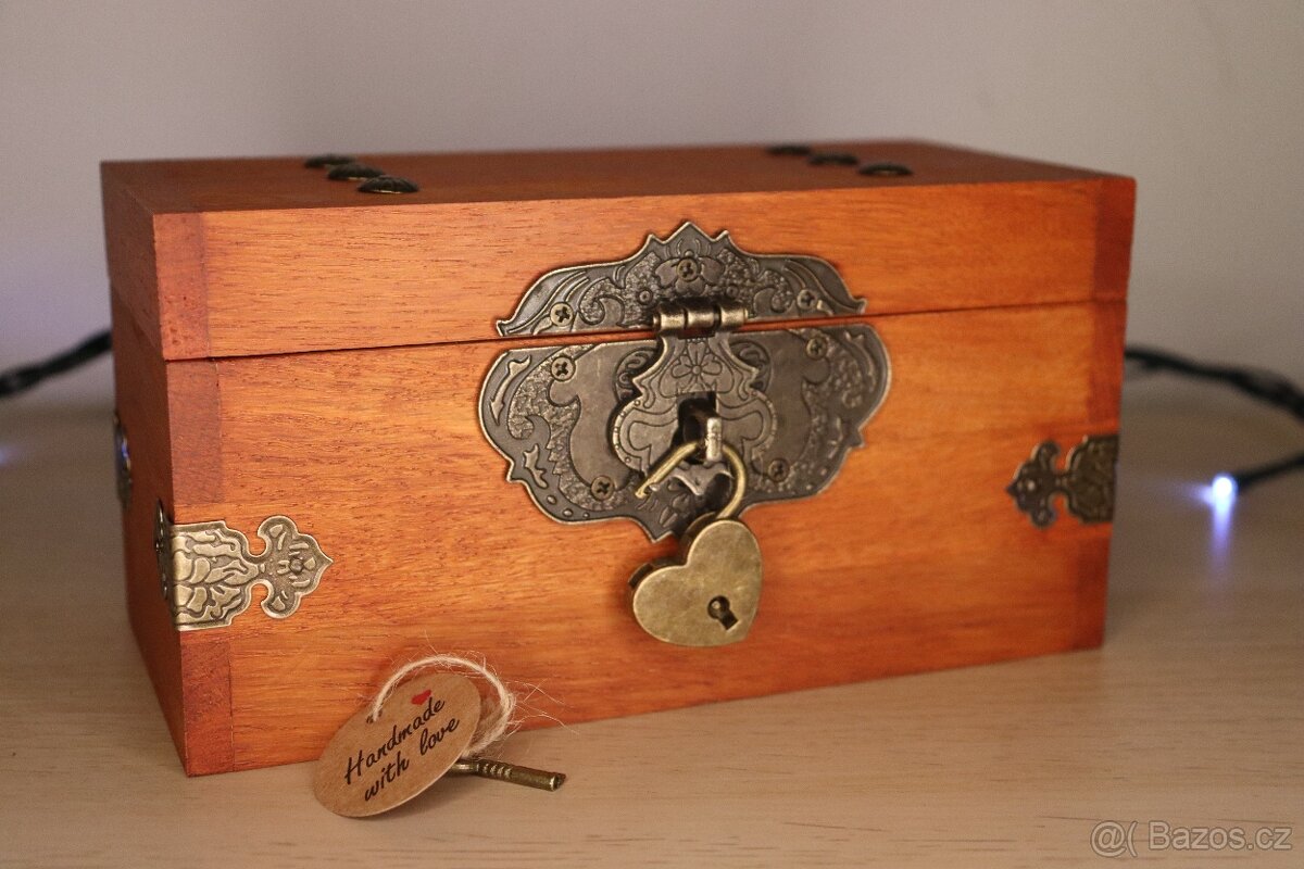 Truhla je ideální k uschování šperků, cenností, rodinných památek nebo jiných pokladů. Díky použití kvalitního dubového dřeva je velmi pevná a hodí se také jako originální osobní či svatební dárek. Každý kus je originál s krásnou kresbou přírodního dřeva.