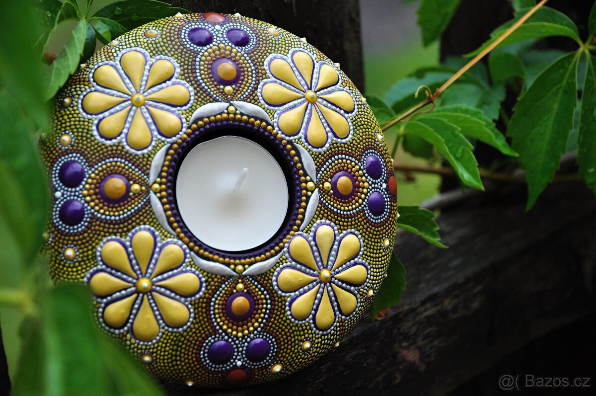 Originální a naprosto jedinečná, ručně malovaná mandala z litého kamene, malovaná profi akrylovými barvami, zafixovaná UV lakem.