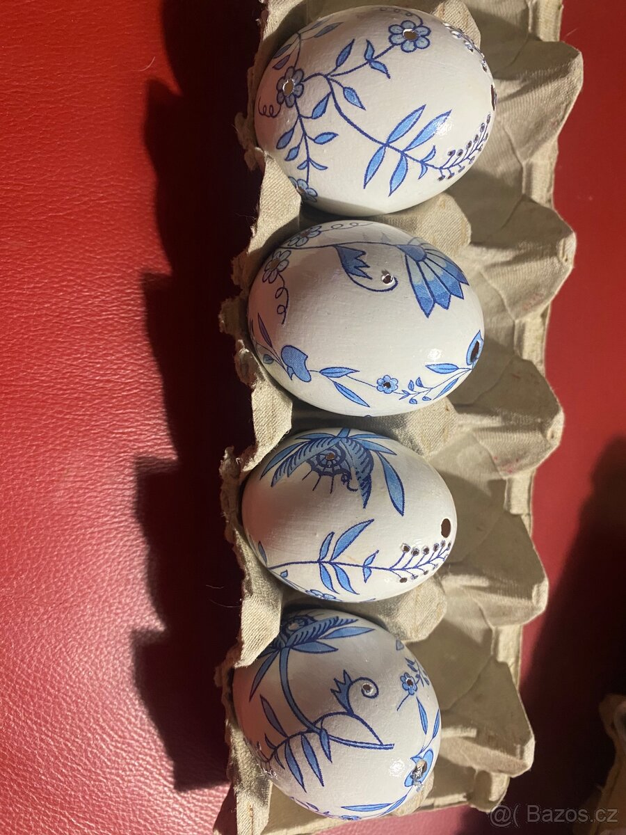Nové vyfoukané slepičí vajíčka, 120 Kč/kus, cibulák vrtané
