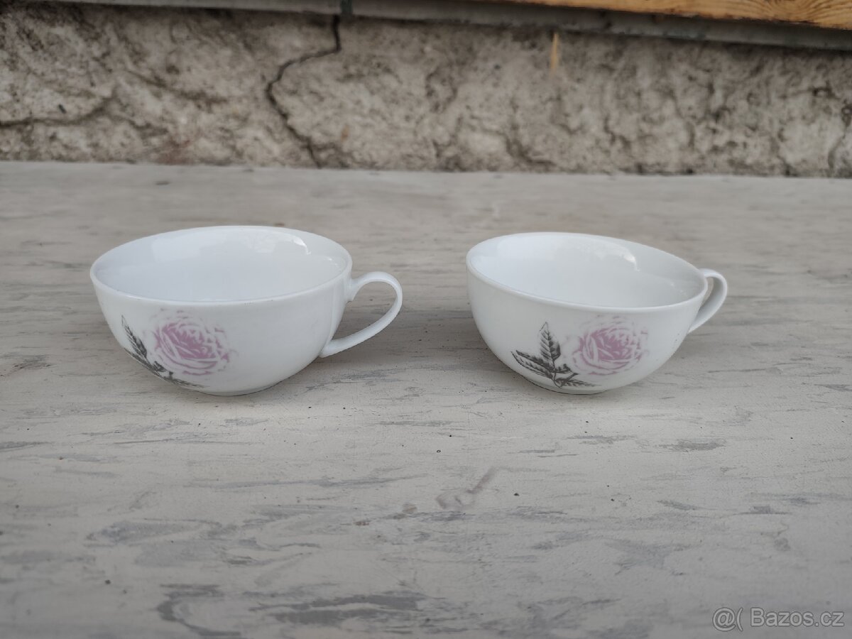 dva šálky s malovanými růžemi, osobní předání u Lázní Bohdaneč nebo mohu poslat