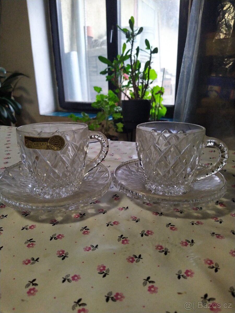 Kávová, čajová sada - hrníčky, hrnky a talířky - [23.12. 2025]Skleněné hrníčky s podšálky.