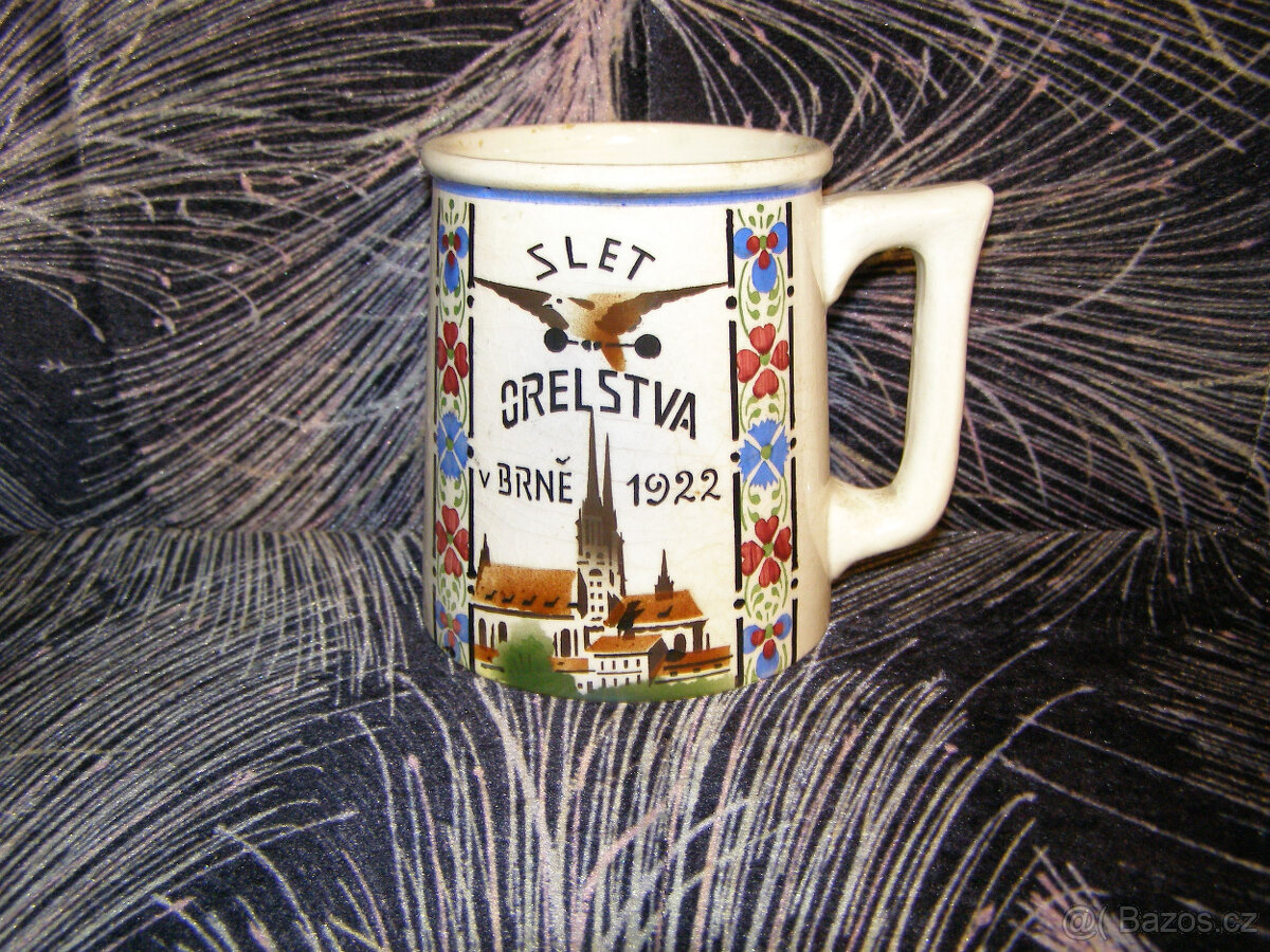 Nabízím keramický korbel Slet Orelstva 1922 , stav dle foto . V případě zájmu poprosím volat nebo SMS .