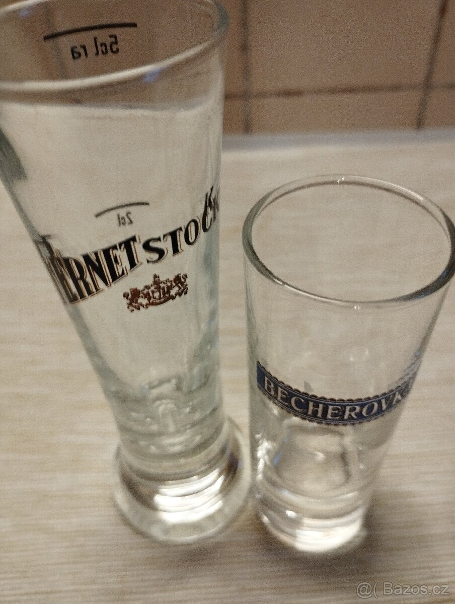 Prodám dvě štamprdle, Fernet výška14cm obsahu 0,5 za 25kč a Becherovka 10cm stejného obsahu za15kč. Po Praze dovezu, jinak zásilkovna