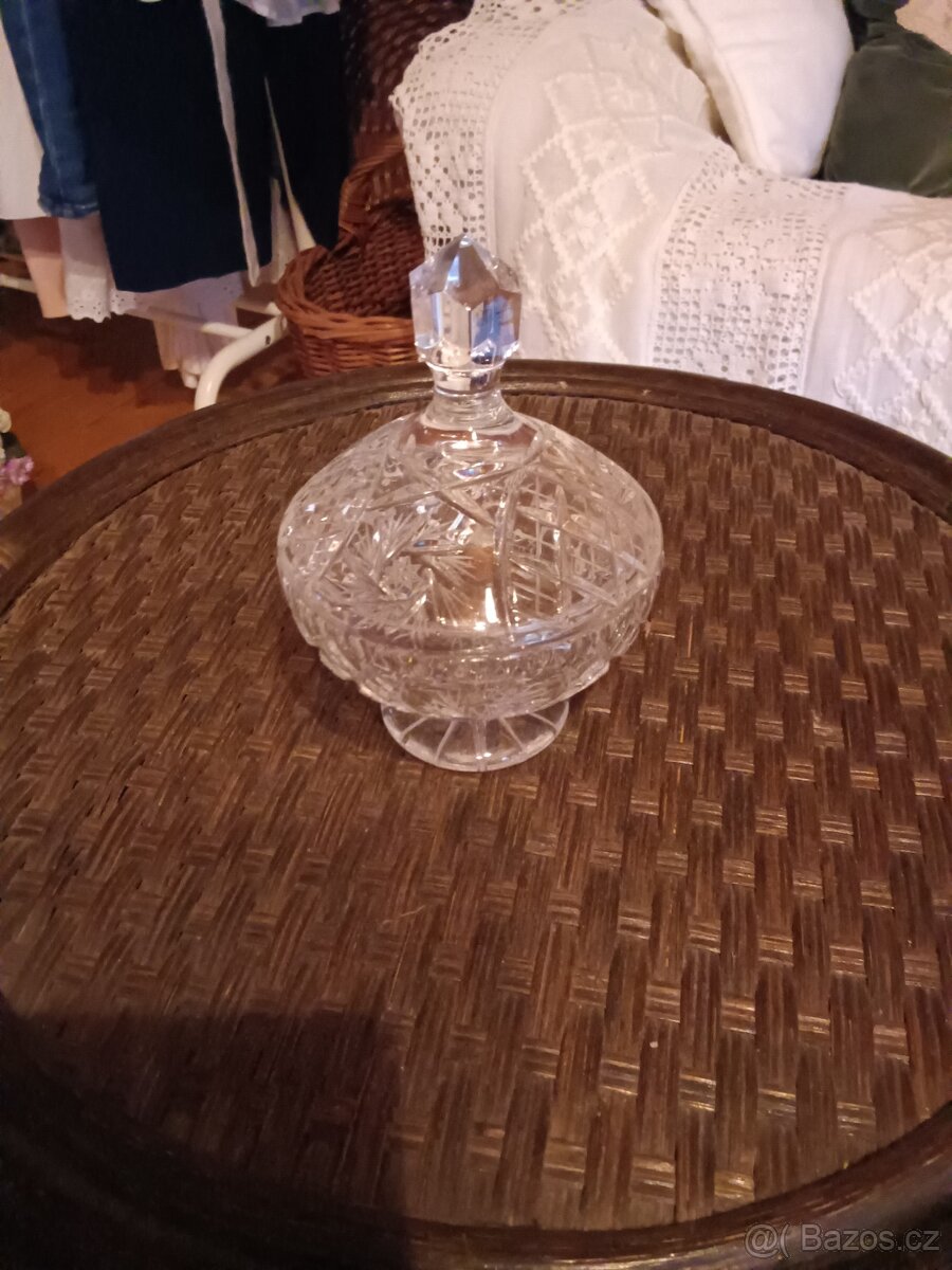 Dóza s víkem menší broušená
