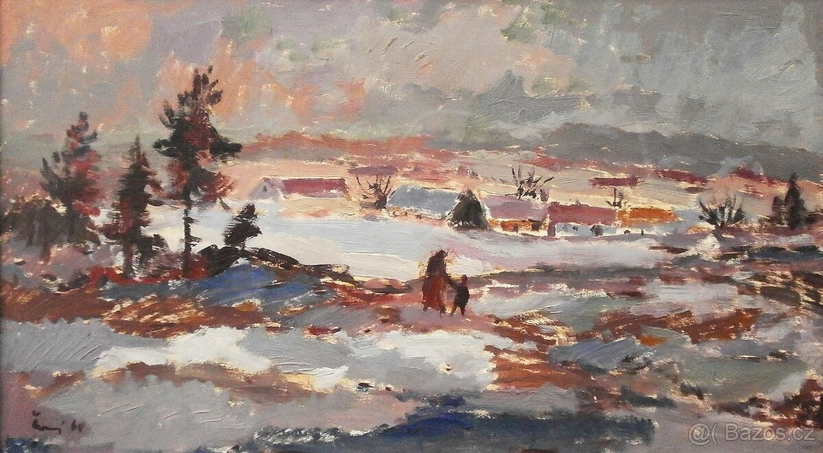 Olej na kartonu 79x45 cm (86x52 cm včetně rámu) Jaroslav Černý *1904, český akademický malíř. Studia 1936 až 1938 na Akademii výtvarných umění u prof. Maxe Švabinského a prof. Otakara Nejedlého.