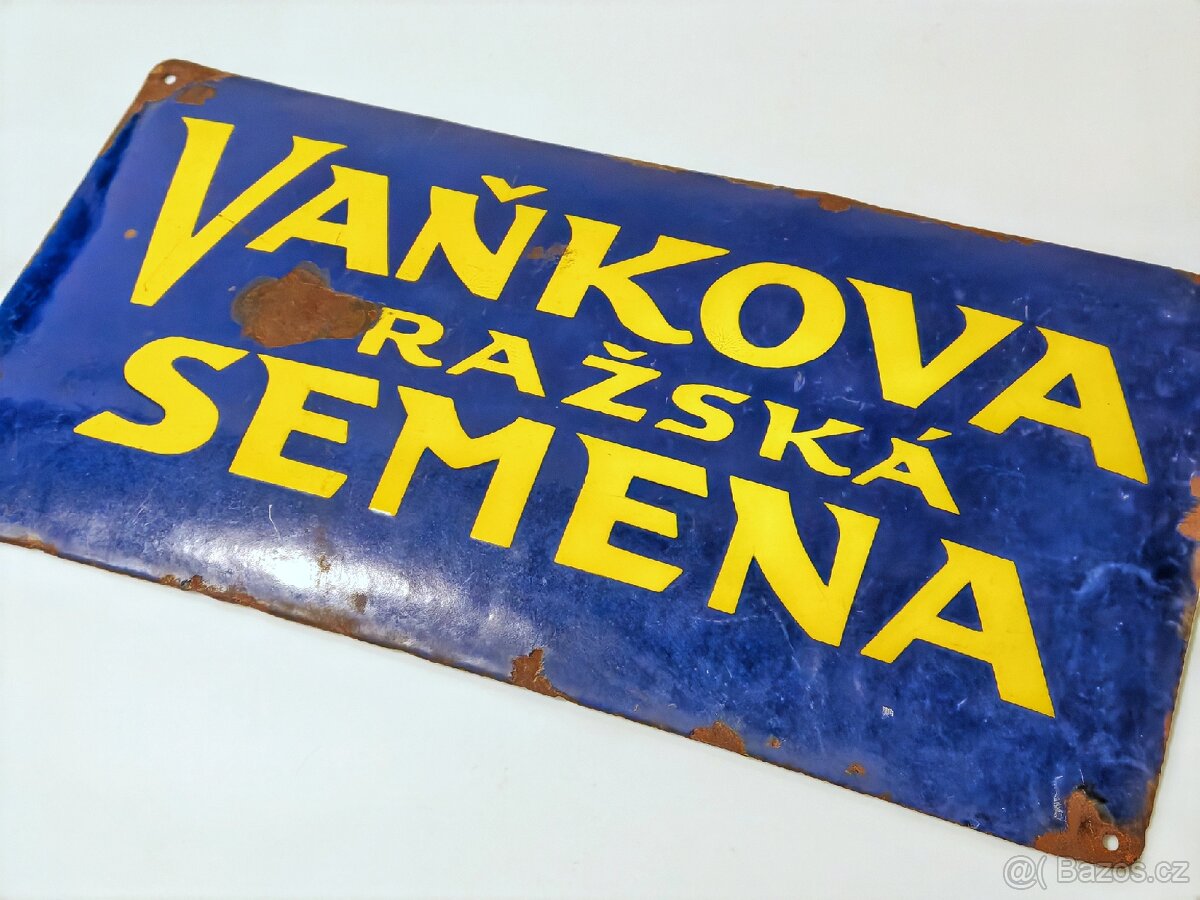 Nabízím starou zajímavou smaltovanou obchodní ceduli. Rozměr 25 x 49,5 cm. Stav viz. foto. Možné zaslání i osobní předání.