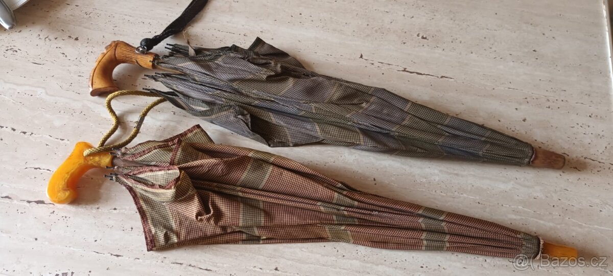 2 deštníky 30 leta, jantarova rukojet