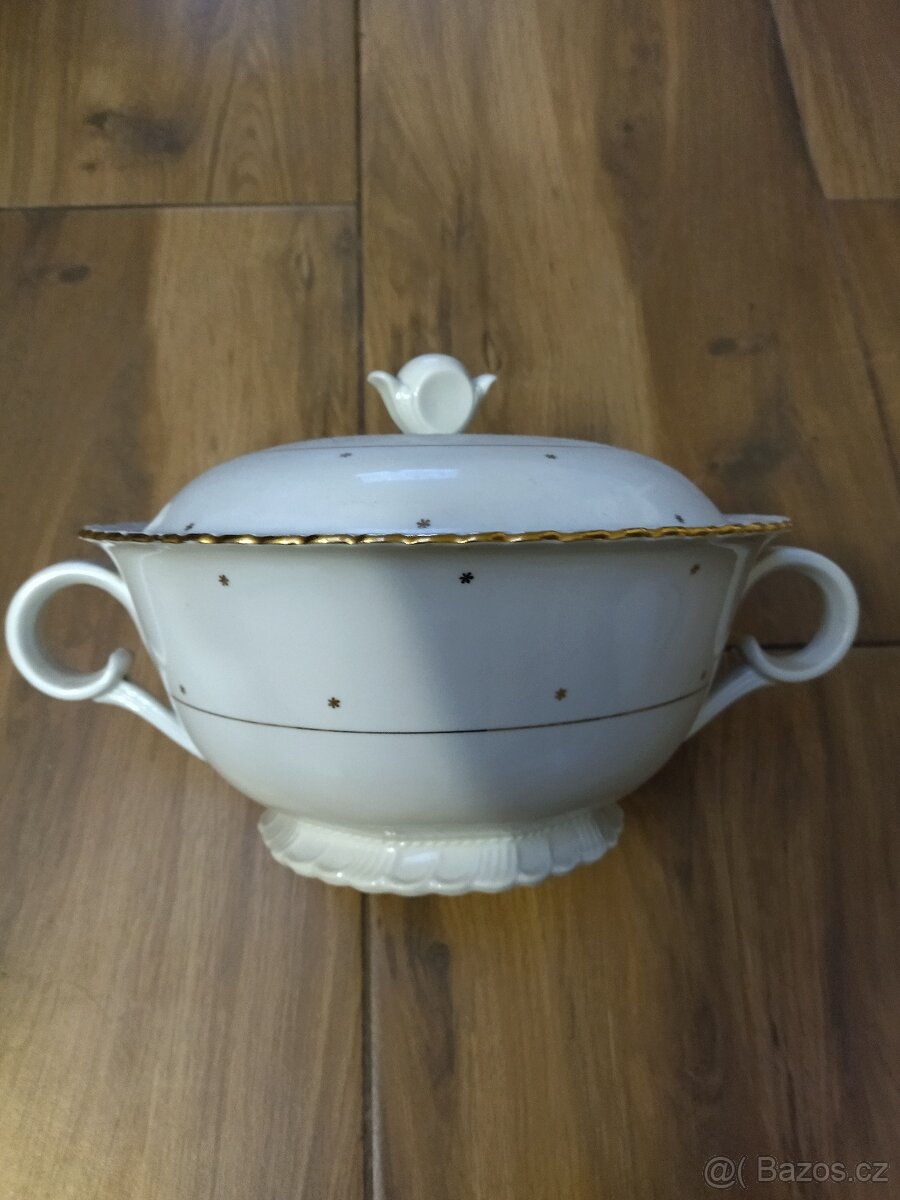 Prodám starožitnou servírovací polévkovou mísu v krásném stavu průměr 26cm ,výška 12cm s poklicí 19cm.Cena - Dohodou??