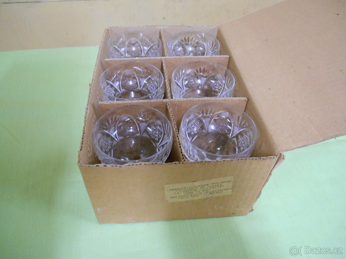 Sada 6kusů broušených skleniček 180ml na šampaňské - nové (staré) v krabici