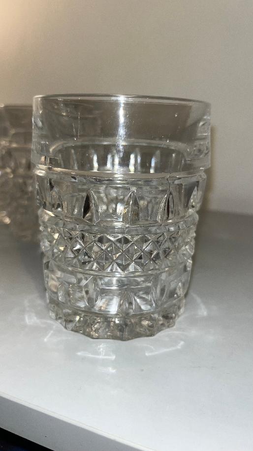 Prodám čtyři lisované sklenice tzv. Whiskovky, tyhle se jmenují BRITTANY. Hezky se drží v ruce. Objem 320 ml. Jsou naprosto v pořádku, bez závad, nezažloutlé sklo, nepoužívaly se.