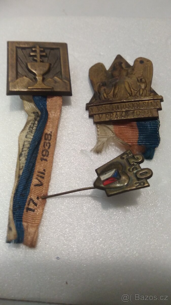 Prodám sadu 3 ks odznaků ze sletu SOKOLA v Praze v roce 1938 ke 20. výročí vzniku ČR. Nabídněte cenu a způsob převzetí.