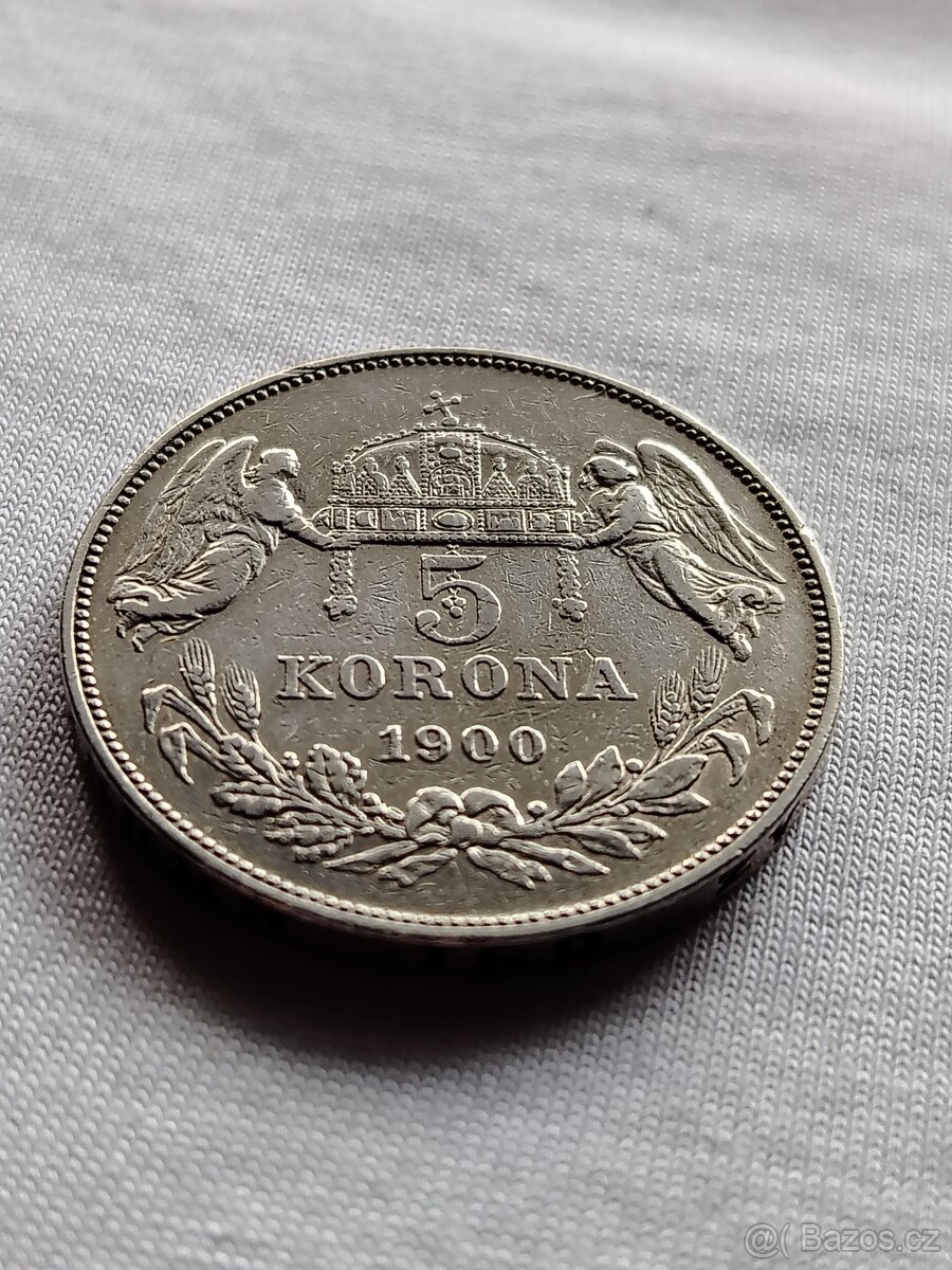 Stříbrná 5 koruna roku 1900. KB