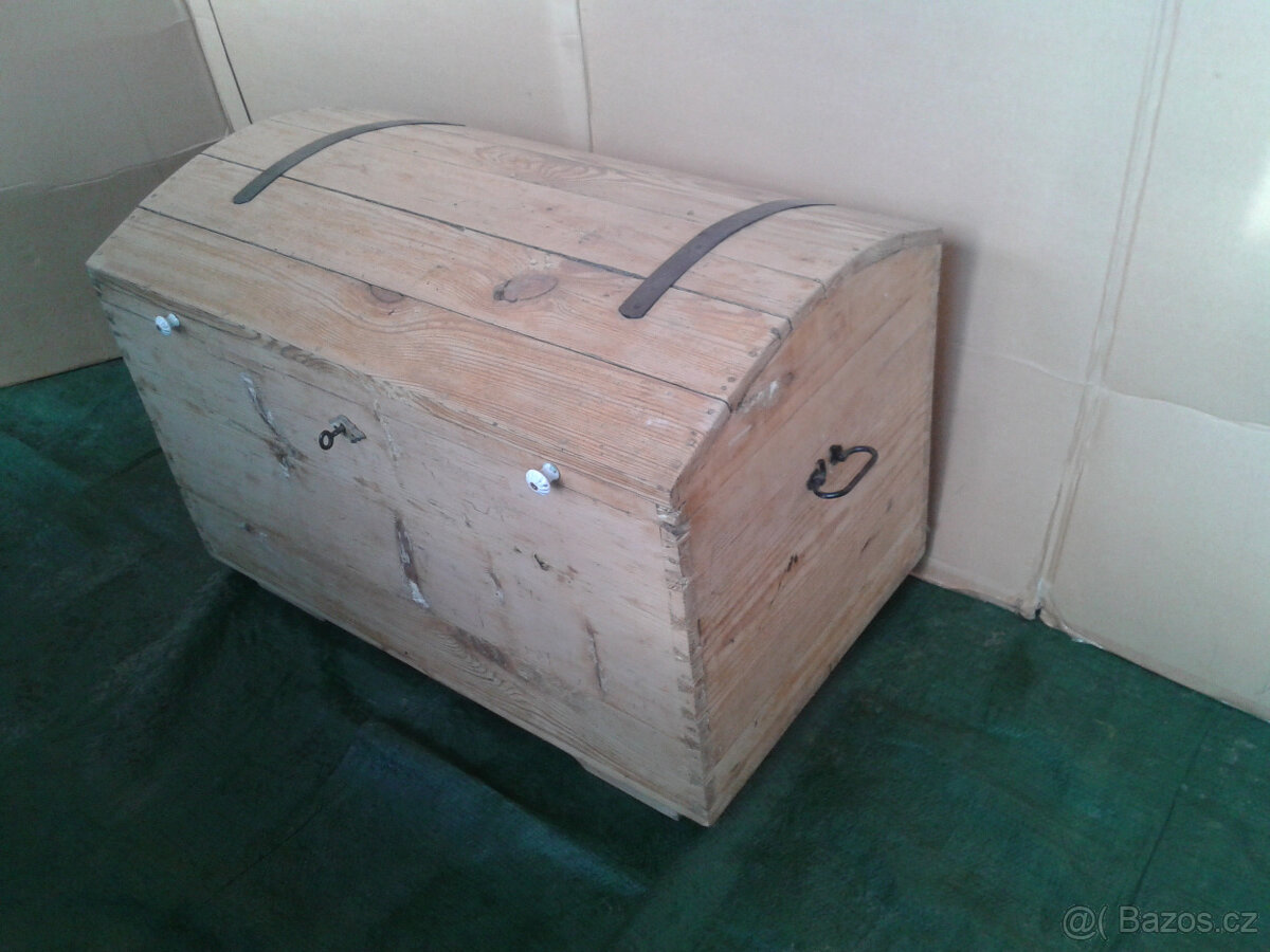 Prodám truhlu je olouhovaná připravená k nátěru.Rozměry D - 92cm, H - 55cm, V - 65cm.