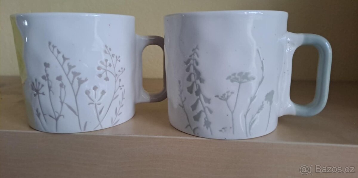 Nabízím dva krásné hrníčky na čaj s přírodním motivem. Barva světle šedá a mentolová. Objem je 430ml. Jsou lehké do ruky. Cena za oba.