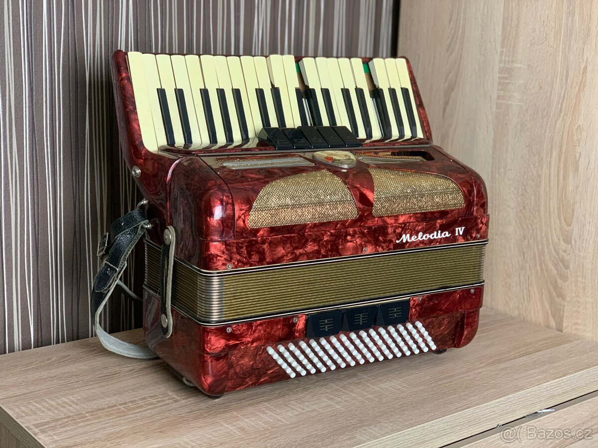 Prodám tuto starožitnou harmoniku melodia IV, funkční ale bohužel chybí některé klávesy