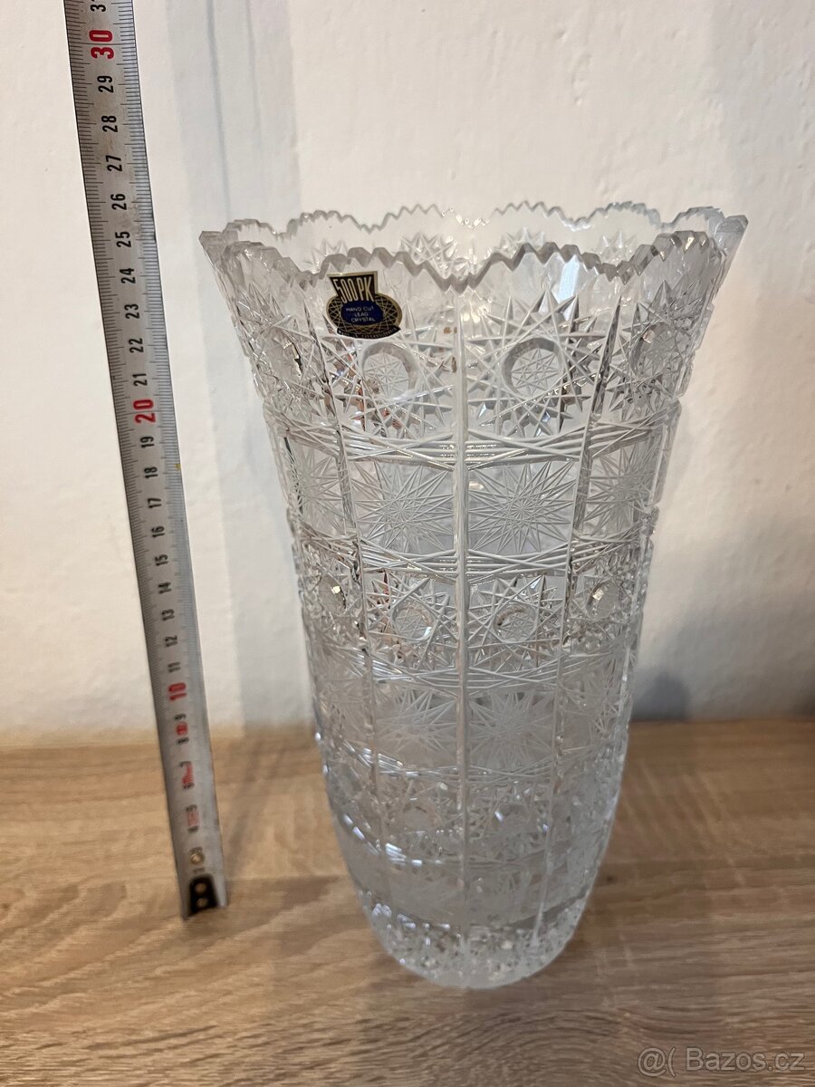 Váza "Iris" broušené sklo - [16.2. 2026]Top stav, výška 30 cm, diamantový brus.