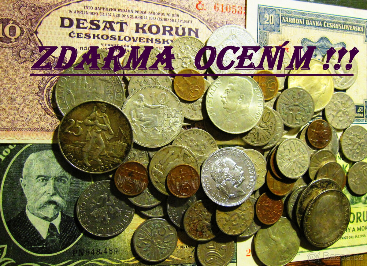 Zdarma ocením staré mince a bankovky..