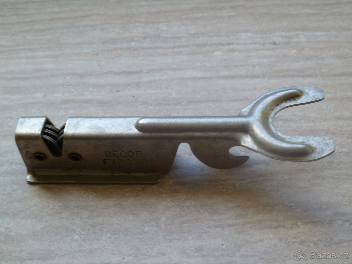 Prodám retro kovový otvírák na láhve, konzervy a ostřič nožů BECOR. Vhodný jako sběratelský kousek