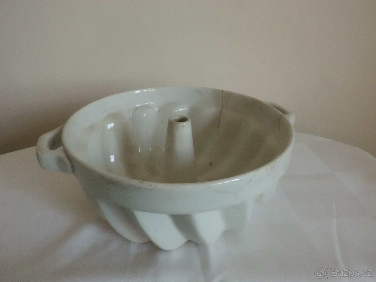 stará keramická forma na bábovku z období první republiky. Forma má nádhernou přirozenou patinu a jemné praskliny v glazuře ( krakelování ) které ji dodávají ten správný historický vzhled. Vhodné pro sběratele kuchyńské keramiky nebo jako rustikální doplněk do interiéru. Nesignováno. Průměr horního okraje 24 cm