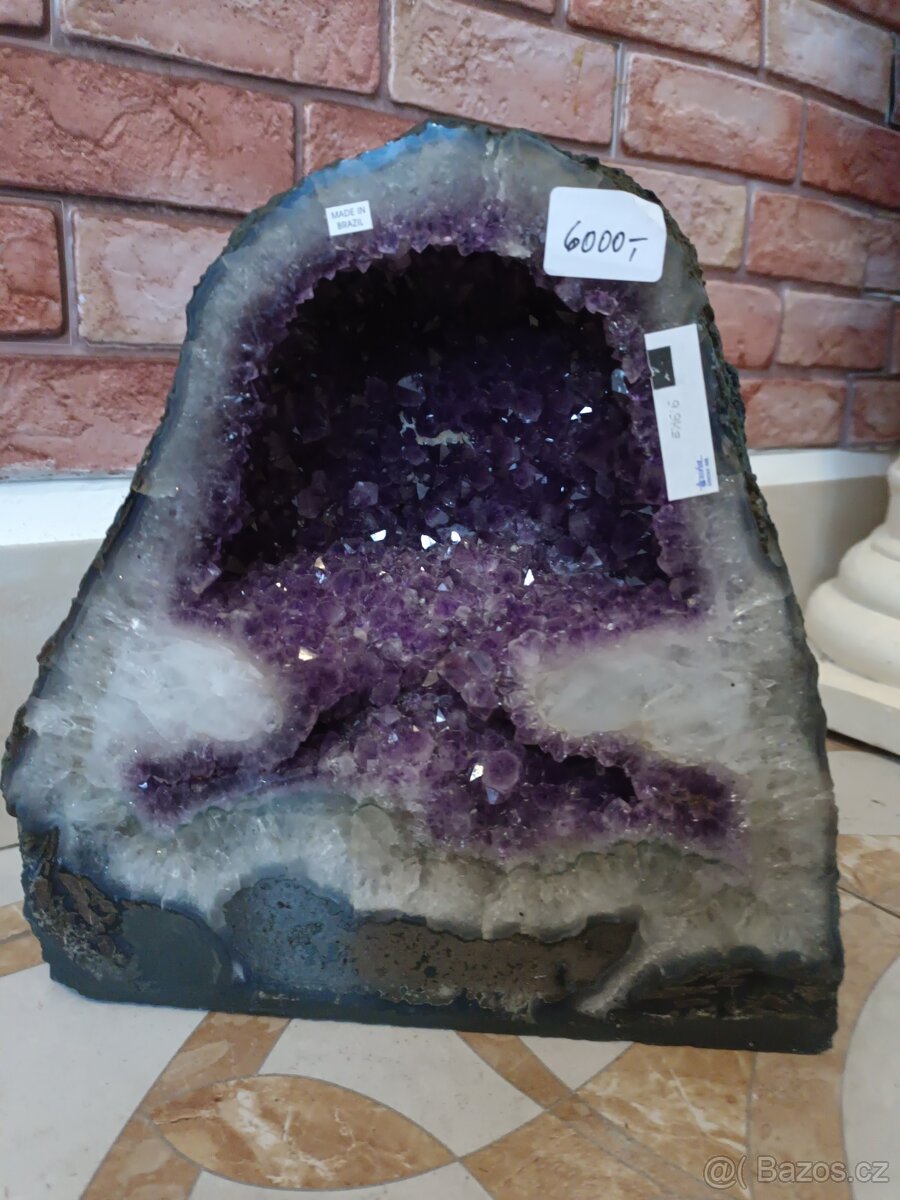 Prodám geodu výška je 24cm a šířka je 23cm.