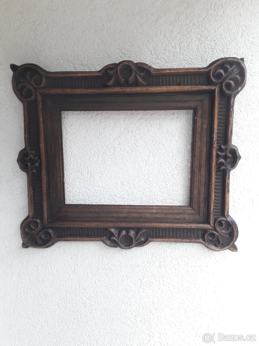 Prodám starožitný ručně vyřezávaný dřevěný rám o rozměru 50x40cm.